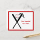 El béisbol cruzó los murciélagos y la gorra, una postal horizontal roja y negra que incluye un minimalista ícono de pictograma de bates de béisbol cruzados negros, una bola, una gorra y tu texto rojo sobre fondo blanco con borde rojo. Este diseño genial es una plantilla y es completamente personalizable. Este diseño moderno y minimalista es un regalo perfecto para el jugador de béisbol en su vida.