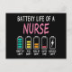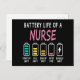 Humorous shift chart showing the battery life of a nurse with colorful levels from start to double shift. Ideal for nursing staff who enjoy relatable workplace humor.