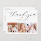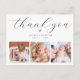 Crea tu propia tarjeta de agradecimiento de foto collage para el Bautismo para agradecer a amigos y familiares por dar la bienvenida a tu pequeño a la comunidad cristiana. El diseño elegante y minimalista presenta un collage de tres fotos personalizadas en la parte inferior y tipografía elegante en la parte superior con tu mensaje de "gracias" en una escritura elegante y el nombre y fecha de tu bebé. También hay un pequeño corazón adorable. En la parte posterior, hay un mensaje personalizable con sus nombres. Hazlo único reemplazando el texto y las imágenes haciendo clic en el botón "Personalizar".