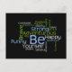 Esta postal presenta un popular diseño de texto inspirador que también se llama nube de palabras. El tema principal es 'Be' y las otras palabras están inspiradoras para ayudarnos a ser lo mejor que podamos ser! Los colores del texto son azules, verdes y blancos tranquilizantes sobre un fondo negro. Perfecto para los adolescentes que podrían usar un impulso de confianza. Todos los productos son de personalizable. Diseñado por Essence in Print de la Naturaleza. Imagen152