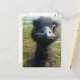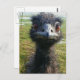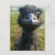 Imagen fotográfica a todo color de una UME, o ave grande parecida a avestruz, con detalles que muestran plumas y plumaje, y sus ojos marrones beady cuidadosamente enfocados en su presa - ¡el fotógrafo!