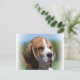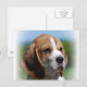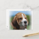 cachorro beagle con una postal de cara muy dulce.