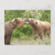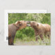 Esta postal muestra una poderosa muestra de dominio entre dos osos marrones en el Parque Nacional Katmai, Alaska. Con bocas abiertas y conmovedoras, se esparcen en una notable representación de su jerarquía natural. Aunque es probable que no causen ningún daño real, la intensidad de su interacción es una visión cruda e inolvidable de la selva de Alaska.