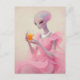 Postal Beautiful Alien Lady in Pink With Orange Juice