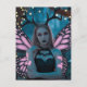 A beautiful fairy with pink butterfly wings and black antlers fantasy art