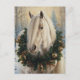 AI generated art of gorgeous palomino horse with wreath in the winter forest snow festive Christmas themed art