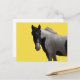 Hermoso poni de color blanco y negro sobre un fondo amarillo brillante.