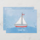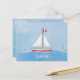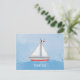 Este diseño presenta una invitación caprichosa a la ducha náutica, con un simple ahoy es un niño, una moderna ducha de bebé, con un lindo barco color agua en el océano, con acentos adorables azul marino y rojo, un diseño minimalista de escritura minimalista tipografía, con un moderno y elegante bote de vela en el agua, celebrar a la mamá para ser, con este lindo niño con invitaciones a la ducha de bebé, celebrar a la madre para ser con esta postal de presupuesto Obra de arte de mano de Laura Lacina.