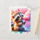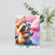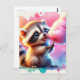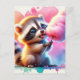 Bebé, animal lindo con caramelos de algodón, acuarela, postal posttravesía, postal, postal, posttravesía, postal animal, caramelos de algodón, dulce, postal linda, generativecontenent, generación de IA, racoon