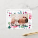 Hermosa postal floral moderna de anuncios de nacimiento. Características de diseño de 1 foto del bebé sobre un fondo floral elegante y escritura moderna de caligrafía en color negro. Añade tu mensaje al dorso. Haga clic en personalizar para editar esta plantilla.