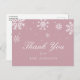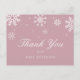 ¡Gracias a sus invitados por celebrar a la mamá! Esta postal de agradecimiento incluye un borde de copos de nieve blancos. Personalice su información o haga clic en "Haga clic en el personalizar más adelante" para editar estilos de fuente, tamaño y colores.