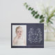 La familia fotográfica moderna de invierno recibe una postal con un moderno guión de caligrafía con letras de la mano "Baby It's Cold Outside" y un patrón de copos de nieve al revés en un fondo azul marino oscuro de medianoche.+++++++++++ Personalícelo con su foto, firma y dirección.