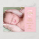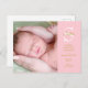 Niña rosa monograma foto nacimiento gracias postal a presentar a su hermosa bebé recién nacida. La parte frontal incluye la foto de su bebé y un delicado panel lateral rosado que incluye un monograma blanco personalizado, texto inicial y dorado para las estadísticas de su anuncio de nacimiento. El reverso muestra texto adicional que se puede personalizar con tu mensaje de agradecimiento. Diseñado por Thisisnotme©