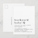Bebé sencillo en el patio trasero Q BBQ Shower Cualquier color Invite en una cómoda postal. Mucho espacio blanco encima de la tipografía para un toque contemporáneo. La cabecera de la ocasión es grande en una elegante minúscula con los detalles en la parte inferior. Personaliza fácilmente el texto a tus propios detalles. Haga clic en personalizar para cambiar el fondo y los colores de fuente si lo desea.