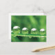Cuatro gotas de agua descansan sobre una hoja de pasto que refleja el mundo a su alrededor, en esta carta pacífica y apacible de la Meditación de la Naturaleza. Fuertes, tranquilas y casi surrealistas, los parques acuáticos evocan maravillas y deleite. Las impresiones postales son de alta gama, robustas y brillantes, pero sólo en el lado de la foto. La parte de atrás es un mate tradicional y fácil de escribir. Ya sea que los mandes como son o los pones en un marco, espero que esta hermosa y elegante carta de la Naturaleza te traiga alegría y placer.