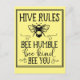 Arte de palabras moderno y divertido: "Reglas de Hive - Adquiera Humble, Bee Kind, Bee You" fondo amarillo.