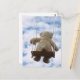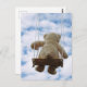 Postal Beertje op schommel met bewolkte blauwe lucht.