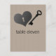 Gracias a sus bodas invitados con la elegancia de esta fantástica postal de Bloqueo del Corazón y Número de la Mesa Clave en beige. Esta única postal de mesa presenta un metalizado bloqueo en forma de corazón con una llave a juego en el fondo de un panel de madera representada por arte digital. Este bonito diseño sería la elección perfecta para un boda sofisticado. Fácil de personalizar, simplemente agregue el número de tabla en el campo de texto proporcionado. Haga clic en el botón "Personalizar" para encontrar opciones de personalización adicionales.
