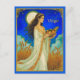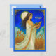 Tarjeta postal en una ilustración de Virgo que representa a una doncella serena que simboliza pureza, gracia y sabiduría. Rodeada de trigo dorado bajo una luna llena radiante, sostiene una cesta de frutas de la cosecha, reflejando la naturaleza terrenal y el espíritu nutritivo de Virgo.