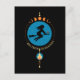 Diseño de Beltane con luna llena, bruja en una escoba con una flor. Debajo una hoguera el texto "Bendiciones de Beltane".