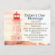 La cita inspiradora de la postal del personalizado Bendiciones del Día del Padre muestra un faro y presenta la Biblia "La bendición del Señor" Verso números 6 24-26, "El Señor te bendiga y te mantenga; el Señor te hace brillar la cara y sé amable contigo; el Señor da la vuelta a tu cara y te da paz". El saludo de espalda puede ser personalizado.*