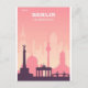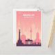 A cualquiera le encantaría recibir esta postal de poster de viajes rosa con un ilustracion retro de Berlín, un horizonte alemán, incluyendo la Puerta Alemana de Brandenburgo.