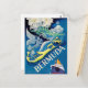 Postal de las Bermudas. Diseño floral de una hermosa sirena en la isla, y un barco por venir.