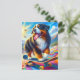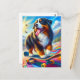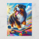 AI generó arte de un patinaje de perros de montaña de Bernese sobre ladrillos coloridos con montañas en el fondo