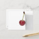 La cereza roja cuelga del borde de la taza gris de porcelana contra el fondo blanco. El tema de verano