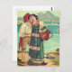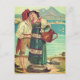 Una postal romántica dulce con un dibujo vintage de una pareja besándose en Napoli (Nápoles) en Italia.