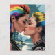 Una adorable pareja con un beso en el arcoiris en un bosque porque el amor es el arte generado por la IA