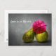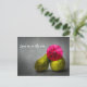 Dos frutas de pera detrás del paraguas rojo de cóctel. El agua cae a su alrededor. El cielo es gris y el clima es tormentoso. Graciosa postal de personalizable. Puedes cambiar o borrar el texto de la plantilla El amor está en el aire. El sello postal coordinado está disponible.