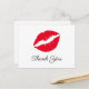 Puedes personalizar el elegante mensaje de texto "gracias" con letra cursiva. Puedes cambiar el color del lápiz labial rojo brillante en los labios si lo deseas. Crea tus propias tarjetas postales de agradecimiento con beso.