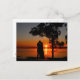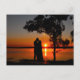 Silueta romántica, o amanecer, de una pareja que comparte un beso junto a la tarjeta postal del borde del agua para cualquier ocasión amorosa