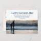 La postal del Día del Padre, personalizado de las Escrituras Cristianas, representa a un hombre y a un niño caminando por la playa del océano. Presenta la Biblia Verse ~ Malachi 4:6, "Él entregará los corazones de los padres a sus hijos y los corazones de los hijos a sus padres". La escritura y el saludo de espalda se pueden personalizar o borrar para una tarjeta en blanco.~