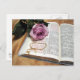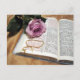 Postal Biblia y Rosa púrpura con cadena cruzada