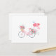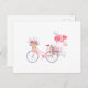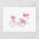 El ilustracion acuático cuenta con una bicicleta rosa bonito con ramos florales delanteros y traseros y globos en forma de corazón