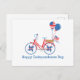Postal Bicicleta caprichosa del 4 de julio roja blanca y