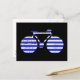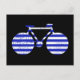 Postal bicicleta con rayas azules y blancas