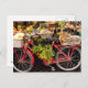 Una bicicleta roja y vintage está llena de comida fresca en cestas de mimbre. Esta fotografía fue tomada en el mercado agrícola de Campo de' Fiori en Roma, Italia. El nombre de la plaza que alberga el mercado callejero diario recibe su nombre ya que fue un campo de flores. Hoy en día se pueden encontrar fruta fresca, verduras y otros productos alimenticios, recuerdos, artículos domésticos y artesanías. ¡Esta postal es totalmente personalizable y totalmente fabulosa!