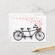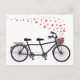 Postal bicicleta tándem con corazones rojos