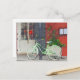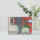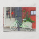 Envíe esta postal como una invitación, invitación o sólo un pensamiento especial. Esta postal presenta una acuarela de una escena callejera con una bicicleta verde pastel inclinada en un poste frente a puertas francesas blancas y persianas oscuras. Haga clic en personalizar para agregar texto en un tamaño de tipo de letra y color que desee en la parte frontal o posterior.