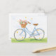 Ilustracion dibujado a mano de una bicicleta azul Vintage con una canasta llena de flores.