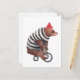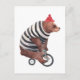 Este diseño presenta un ilustracion acuarela de un oso en una bicicleta con un suéter rayado y un gorra rojo.