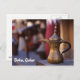 Una cafetera frente a una bandera catarí en el popular Souq Waqif de Doha. Una cafetera simboliza la bienvenida en todo el mundo árabe.