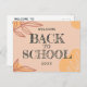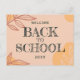bienvenido de vuelta a la postal escolar, con fondo de melocotón