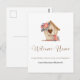 Tarjeta postal personalizada para agente inmobiliario "Bienvenido a casa". Regalo perfecto para estrenar casa o para la entrega de llaves a sus clientes. Para un toque personal, agregue el nombre del agente inmobiliario/su nombre a la tarjeta postal personalizada. Desea lo mejor al comprador de la vivienda diciendo "Felicitaciones, ¡brindamos por muchos años de felicidad!". O puede cambiarlo a sus propios textos o información como desee. Siempre puede agregar el logotipo de su empresa, su contacto y sus propios mensajes. Esta tarjeta postal encantará a sus clientes y ellos referirán su negocio a muchos más amigos suyos.