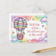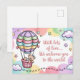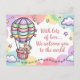 Postal Bienvenido bebé con oso de peluche en globo aerost