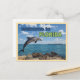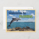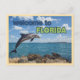 Una postal luminosa de estilo vintage con un delfín que salta sobre las aguas azules de Florida. El diseño tiene un ambiente clásico y retro de "Bienvenido a" tarjeta de felicitación de viaje, perfecto para celebrar el Estado Sunshine y su hermosa vida marina. Esta tarjeta es ideal para enviar una cálida bienvenida, conmemorar un viaje o dar a alguien que ame las playas, la vida marina o las vacaciones tropicales. Un diseño divertido y alegre para la costa.