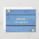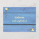 Dos líneas de texto de personalizable resaltan esta postal azul de madera de madera con adorables esquinas florales amarillas.